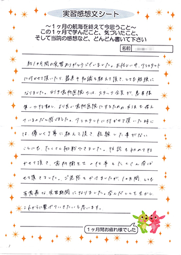 1ヶ月間ヨリタで実習をしてみて、どう感じたかを書いて頂いた
