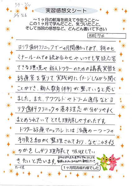 ヨリタ歯科クリニックは、新人教育がしっかりしているので、昨日できなかったことが