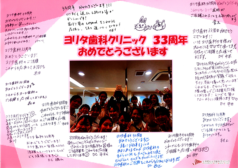 [’24/6/8] 今日はヨリタ歯科クリニック開業33周年