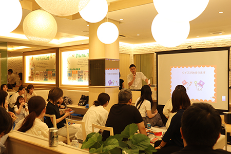 司会進行の新谷さんの出題するゲームに、みんなが真剣です。