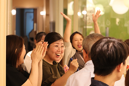 笑顔いっぱい、笑い声溢れるのメンバーの皆と、