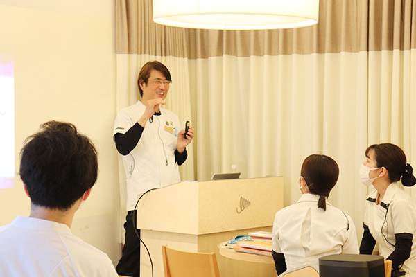 ~14:00 オリエンテーション 14:00~14:20 アイスブレーク(歯科クイズ) 14:20~15:00 院長講話 15:00~15:10 衛生士スタッフのスピーチ 15:10~15:50 診療見学・グループワーク 15:50~16:00 挨拶・終了 |