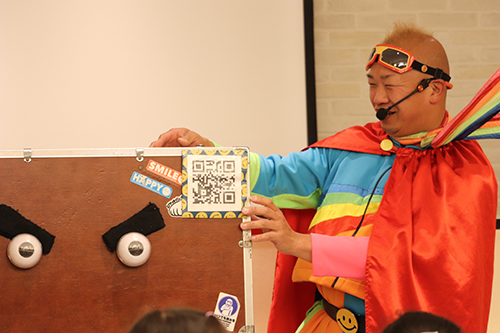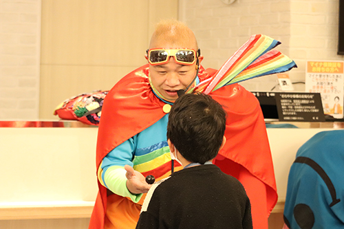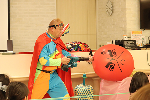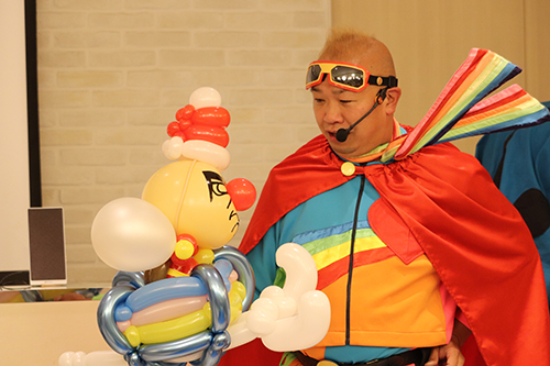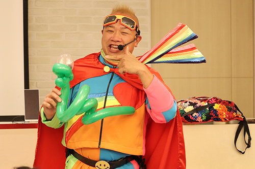 最後にお待ちかね、大人気大道芸人スマイルパフォーマーのQちゃんによる
