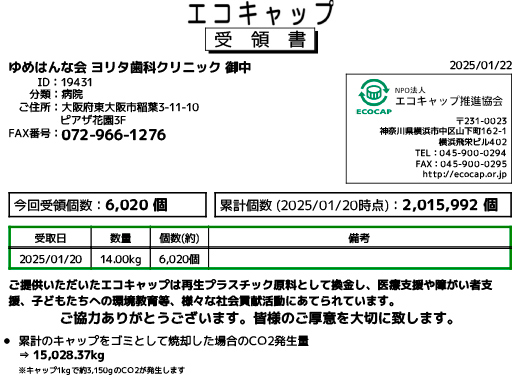 ボックス内は、患者様が持ってきてくださったエコキャップで、いつも満杯。