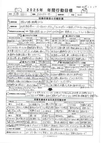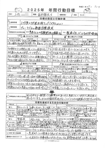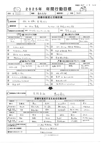 新人研修や課題などで大変な中、この用紙に今年の達成目標を
