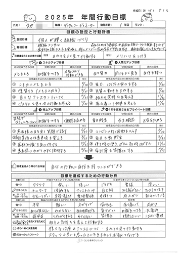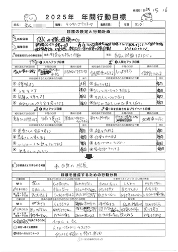 先日、新人メンバーから年間行動目標が、私の元に届きました。