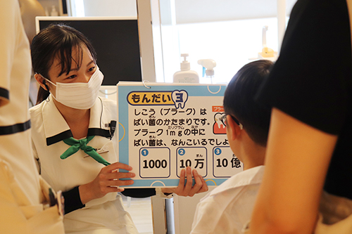 次は、歯のお掃除に挑戦できる、歯科衛生士体験。