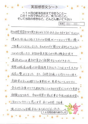下記は、実習感想文シートの内容です。