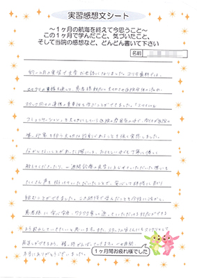 下記は、実習感想文シートの内容です。