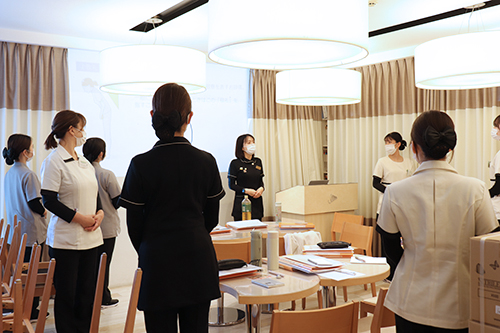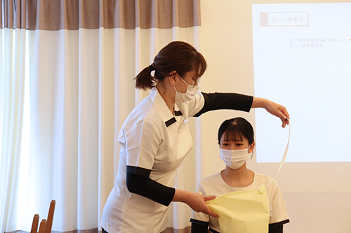 また、患者様にエプロンをかける際の導入や声掛け、所作も