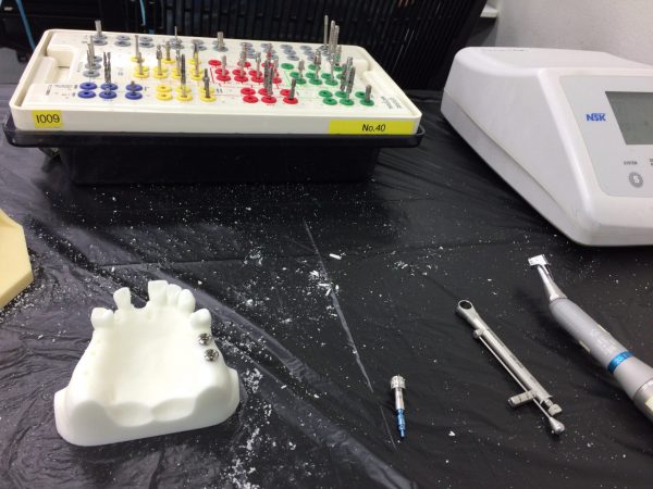 内容は、インプラントを定まった位置に埋入するための、知識と技術の習得です。