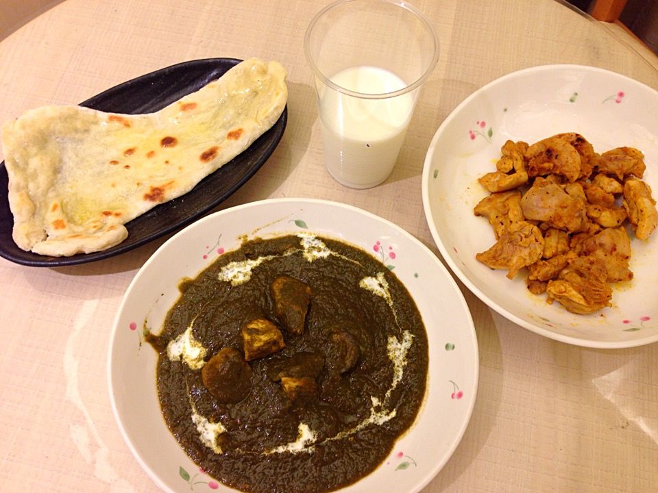 今回のメニューは、グリーンカレー&ナン、タンドリーチキン、ラッシーです。