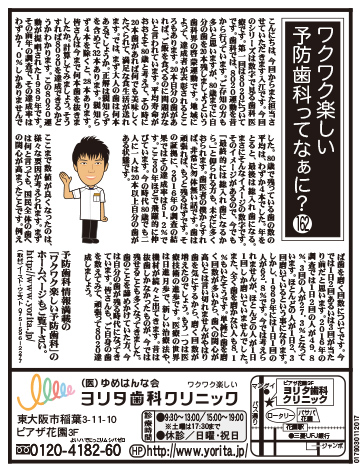 ワクワク楽しい予防歯科ってなあに vol.162 こんにちは、今回からまた担当させていただきます入江です。 今回のシリーズは数字で見る歯科医療です。 歯科では、8020運動を昔から行っています。 地域によって、達成者が表彰されるところもあります。 20本自分の歯があれば、ご飯を食べるのに問題がないと 平均寿命がおおよそ80歳と考えて、その時に20本歯があれば では、まず大人の歯は何本あるでしょうか。 正解は、親知らずを含めて32本あります。