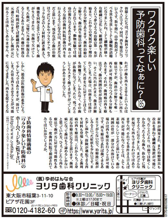皆様こんにちは、ヨリタ歯科クリニックの入江です。 数年前に、山中教授がノーベル賞を受賞してiPS細胞が話題になりましたね。 歯科治療の分野でも、歯の再生療法の研究は盛んにされています。 動物実験では成功の報告などもありますが、我々のような街の歯科医院が 残念ながら歯の治療は今だにメタルやプラスチック、セラミックなどの人工材料に 新しく歯が生えてきたり、虫歯で欠けてしまった歯が、完璧に元通り しかし歯が元に戻ることは決してありません。 とても難しい再生療法ですが、歯科の分野でも唯一再生が可能になりつつある 歯の周囲の骨が溶けてしまい、そこに汚れがたまり、歯茎が腫れてしまった場合、 しかたなく、その歯が抜歯になってしまったり、残ったとしても大きく歯ぐきが 再生を促すような材料が開発され、また治療器具も改良を重ねて繊細な処置が可能に まだどんな状況でも再生できるわけではありませんが、それでも条件さえ合えば 再生療法であれば歯ぐきもあまり下がらないので、治療後に歯がしみるといった また少し前から、保険が適応できる再生材料も登場しました。 きっと歯周病の再生療法は、これからもっと身近な治療法になると思います。 |