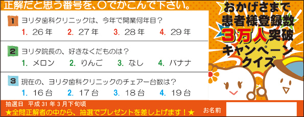 当院に関するクイズ、全3問を答えていただき、全問正解者の中から