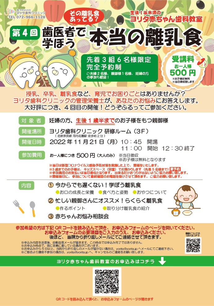 第4回 ヨリタ赤ちゃん歯科教室 『離乳食編』予約申込み開始!