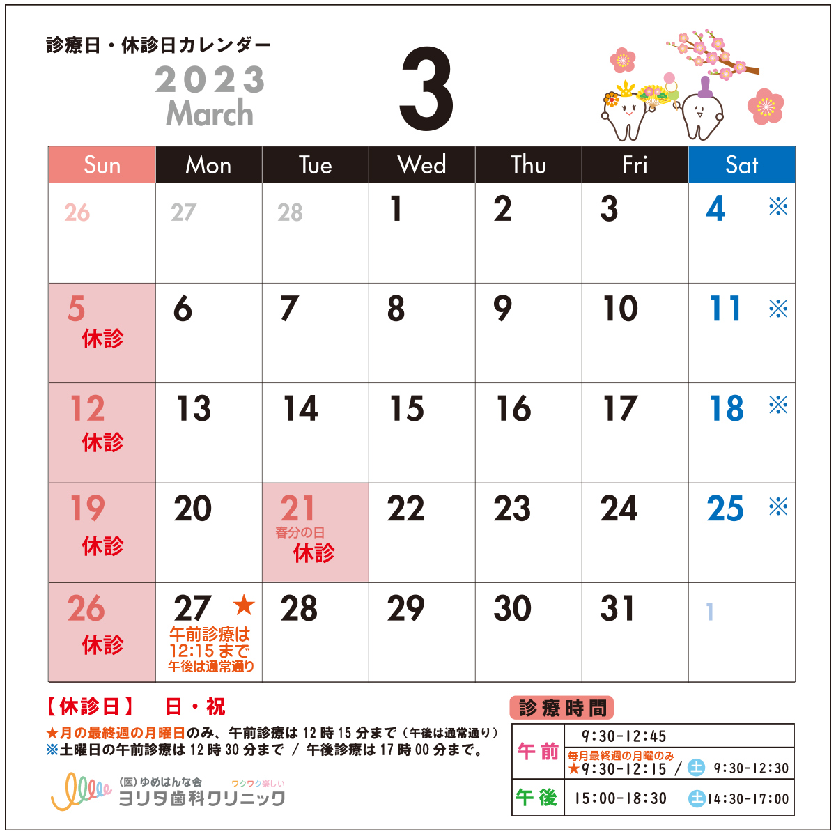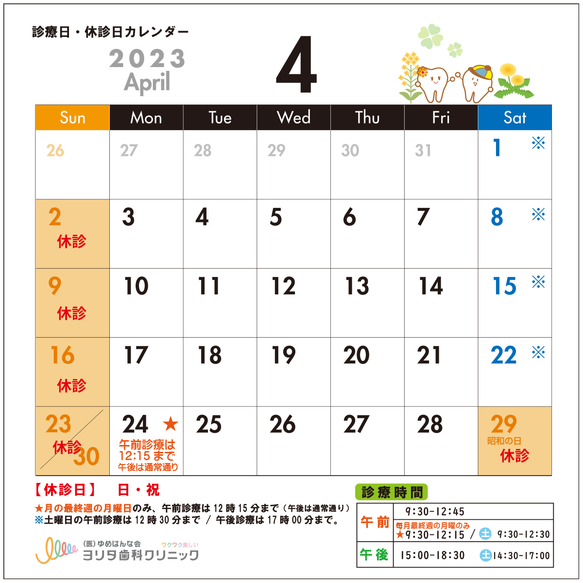 (※月の最終週の月曜のみ、午前診療が9時30分~12時15分まで)