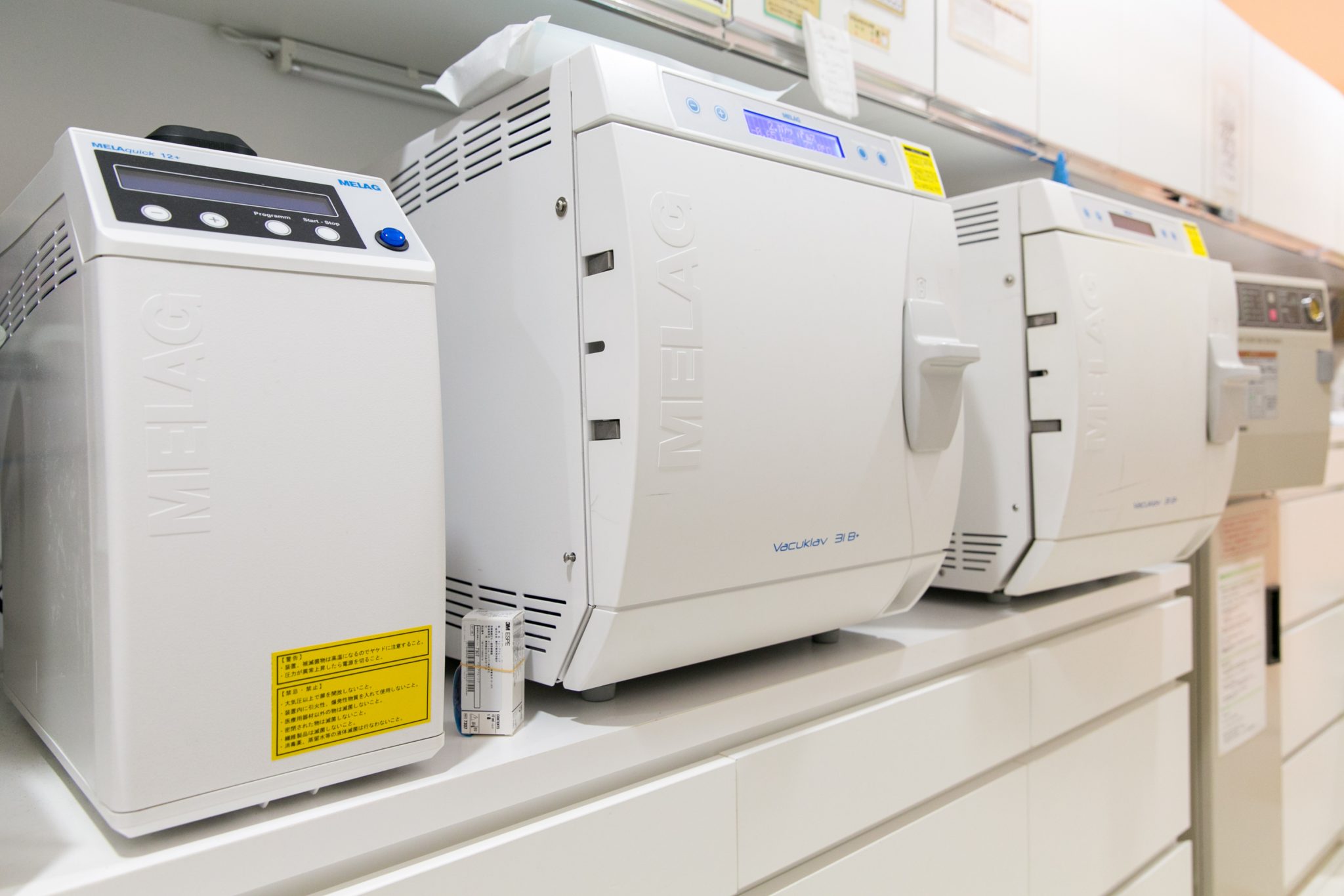 歯科治療をすべての患者様に安心安全に行うため、滅菌消毒は徹底しております。