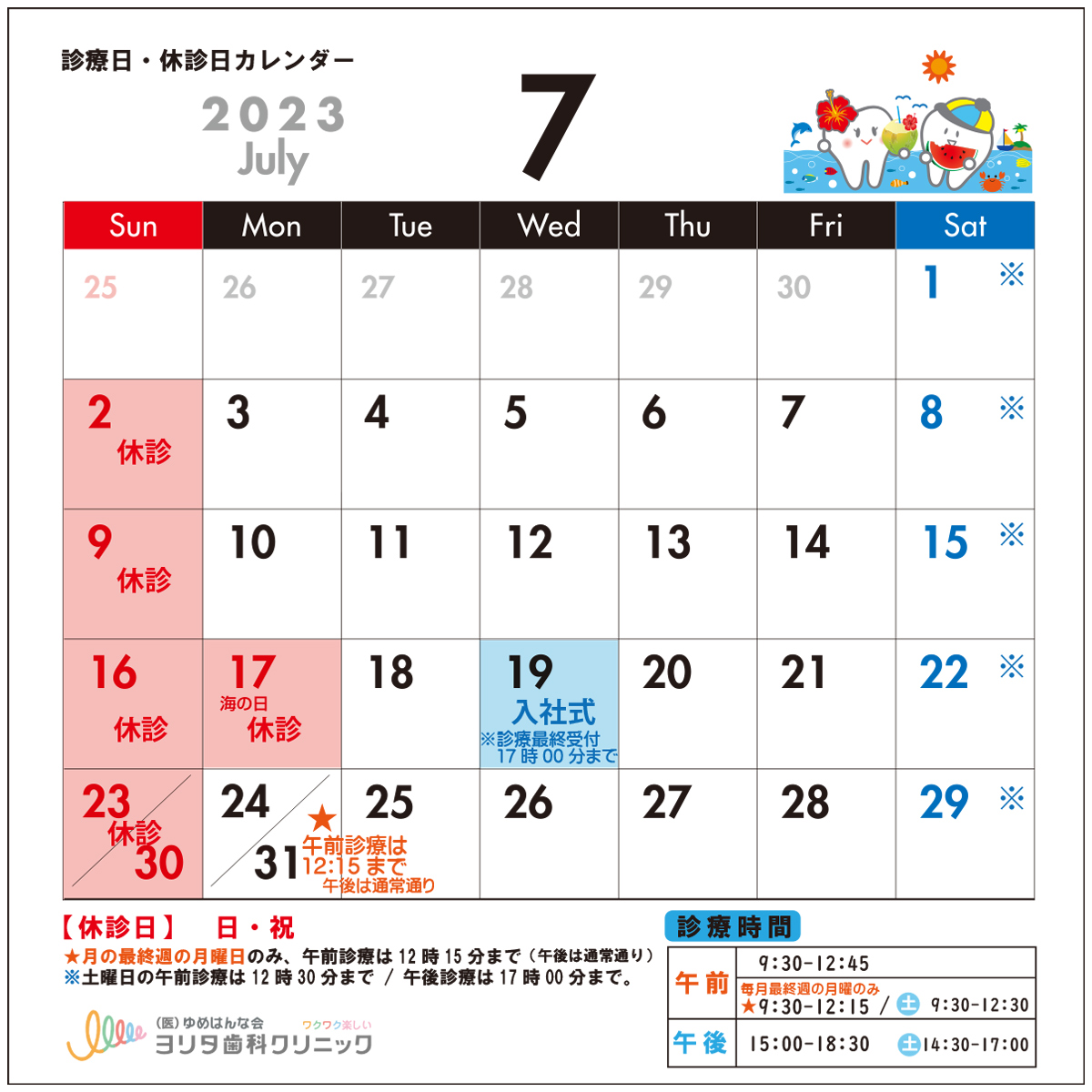 7月の休診日は、