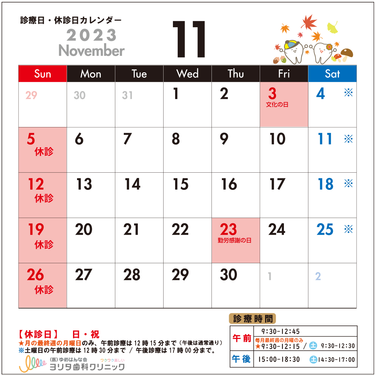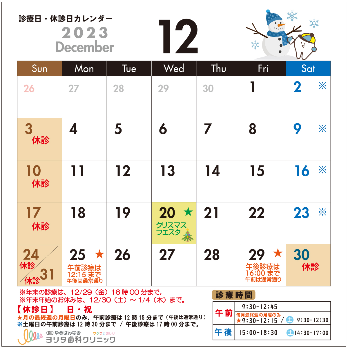 11月・12月の診療日、休診日、イベントのお知らせです。