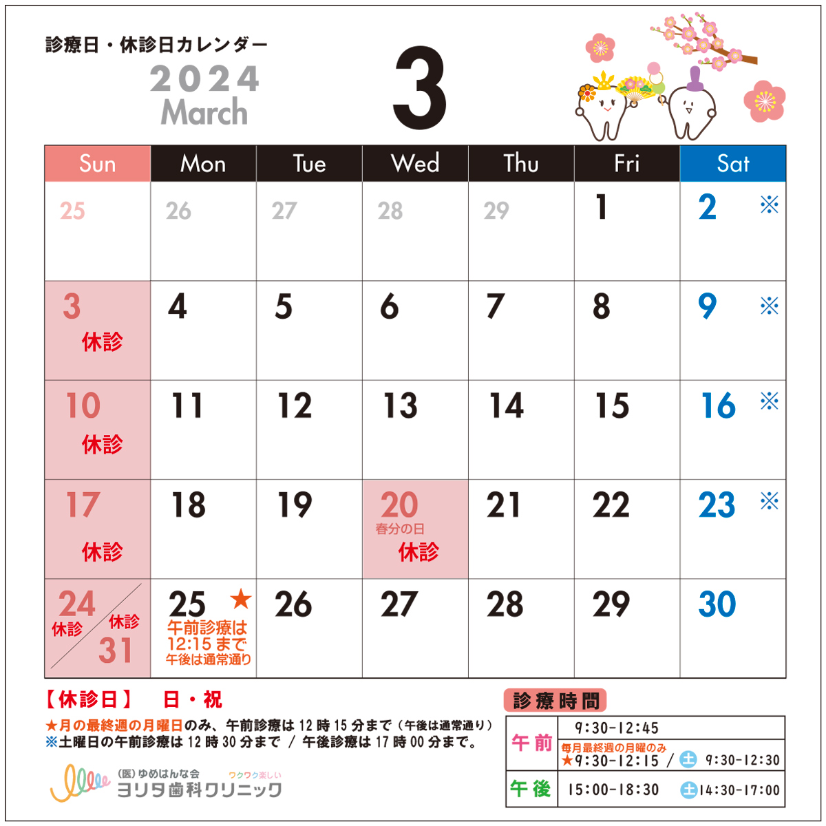 3月の休診日は、