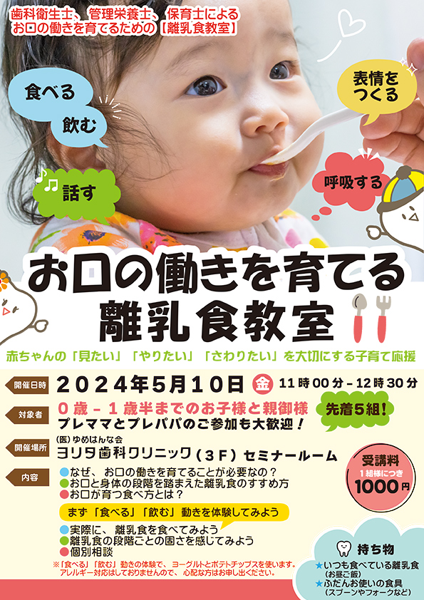 5/10(金)『お口の働きを育てる離乳食教室』開催決定!
