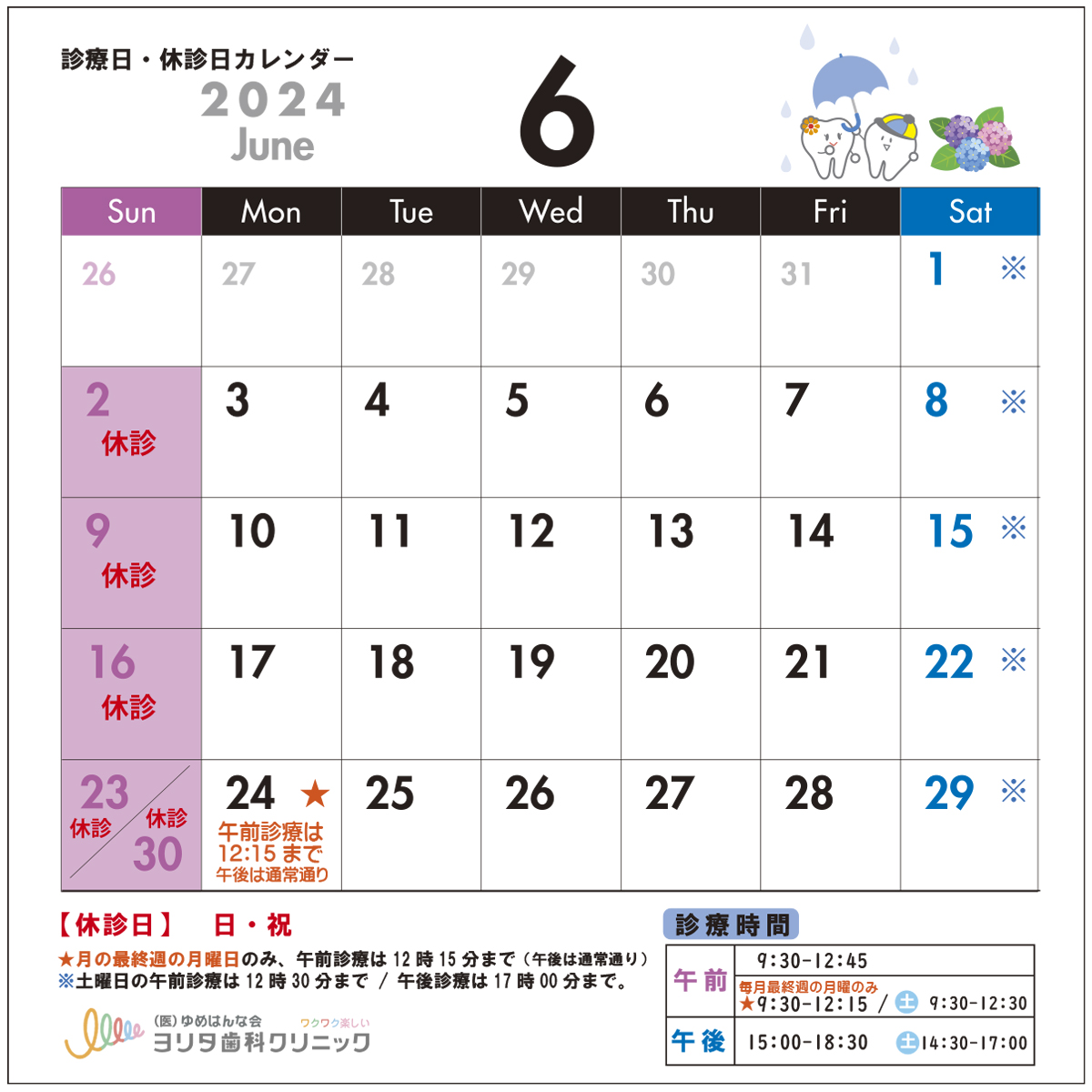 5月・6月の診療日、休診日、イベントのお知らせです。