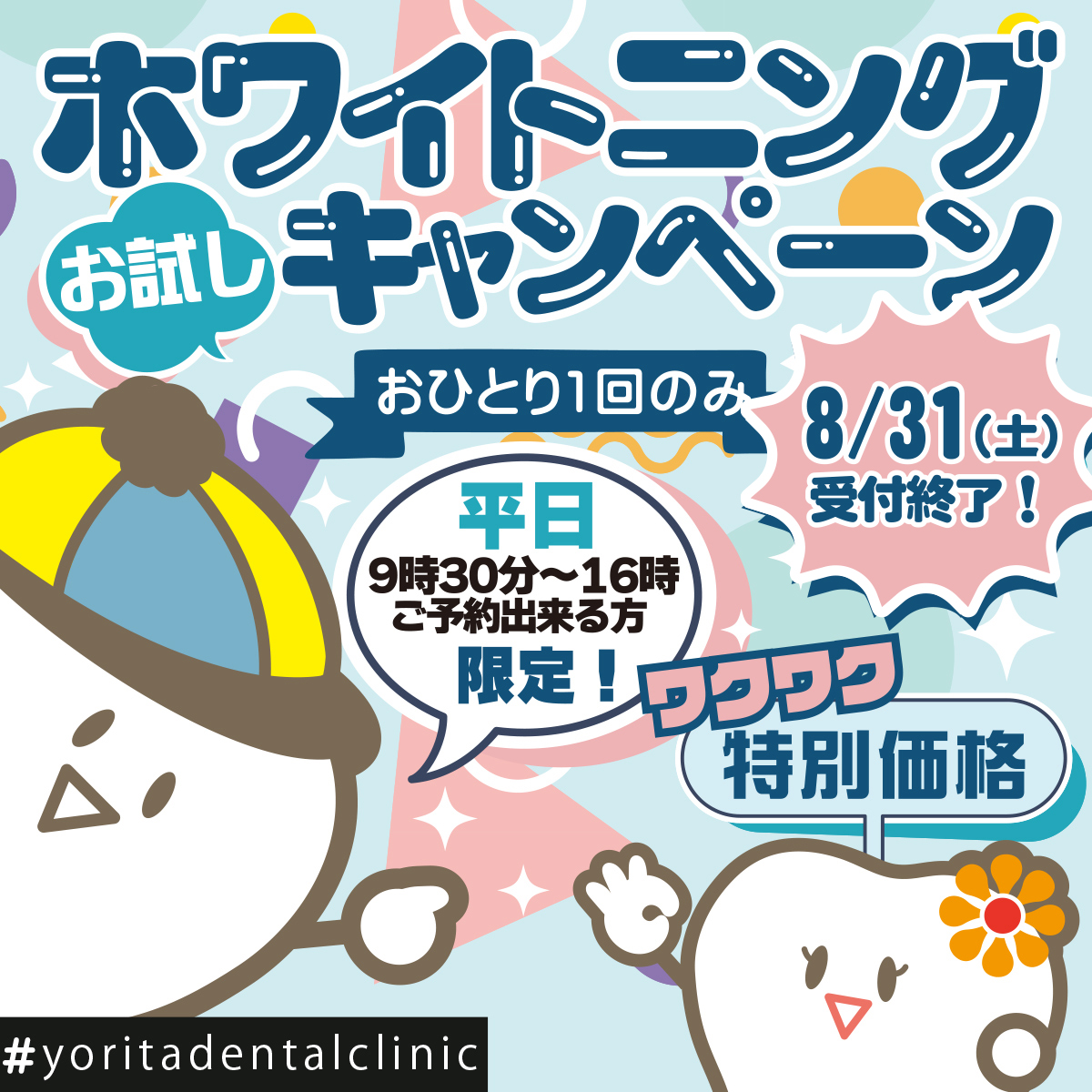 ホワイトニングお試しキャンペーン、8/31(土)まで!