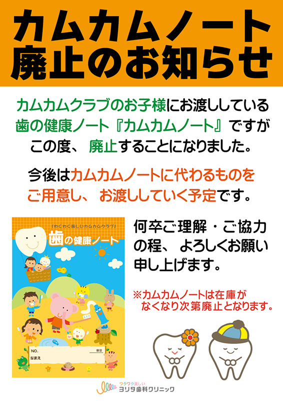 いつも、当院のカムカムクラブに通われている患者様へ、お知らせです。