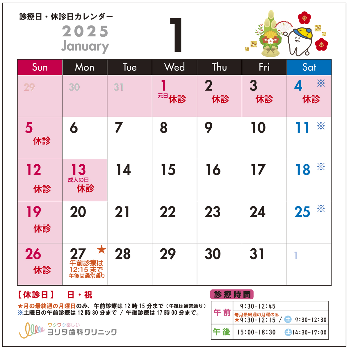 1月・2月の診療日、休診日、イベントのお知らせです。