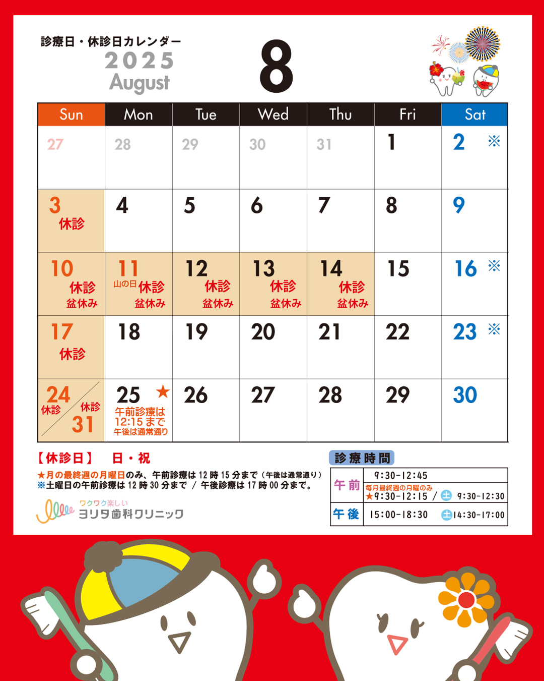 🏝8月の休診日は、