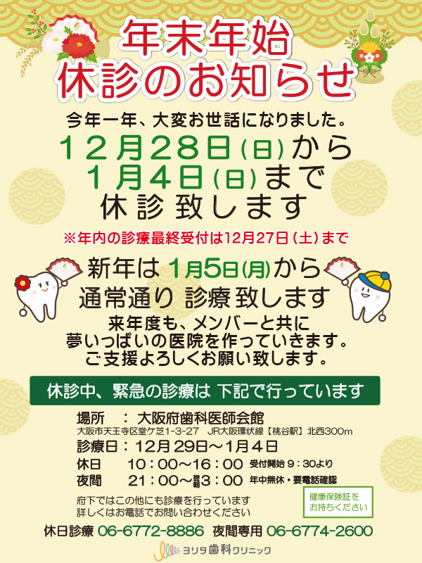 年末年始の休診・緊急診療場所のお知らせ