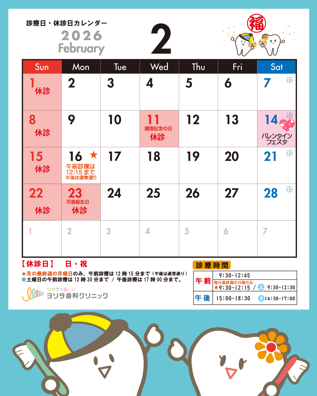 💝2月の休診日は、