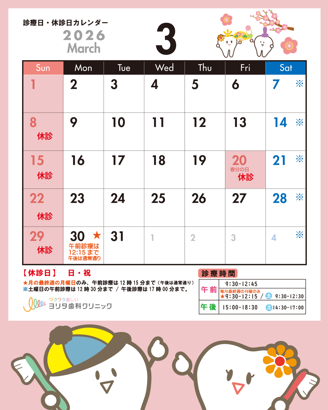 🎎3月の休診日は、