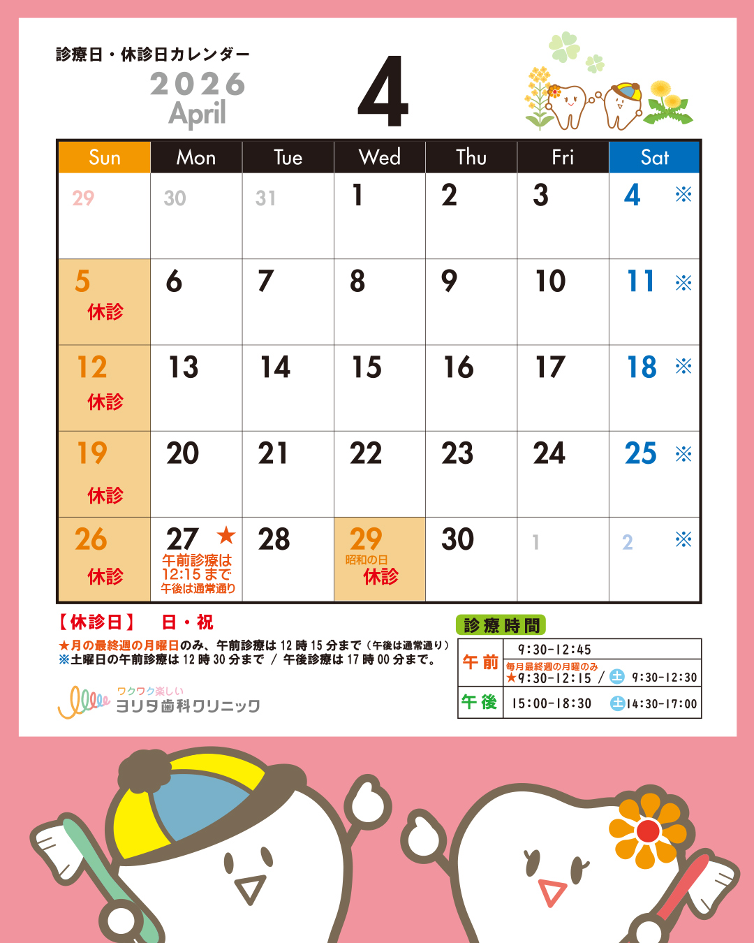 🌸4月の休診日は、