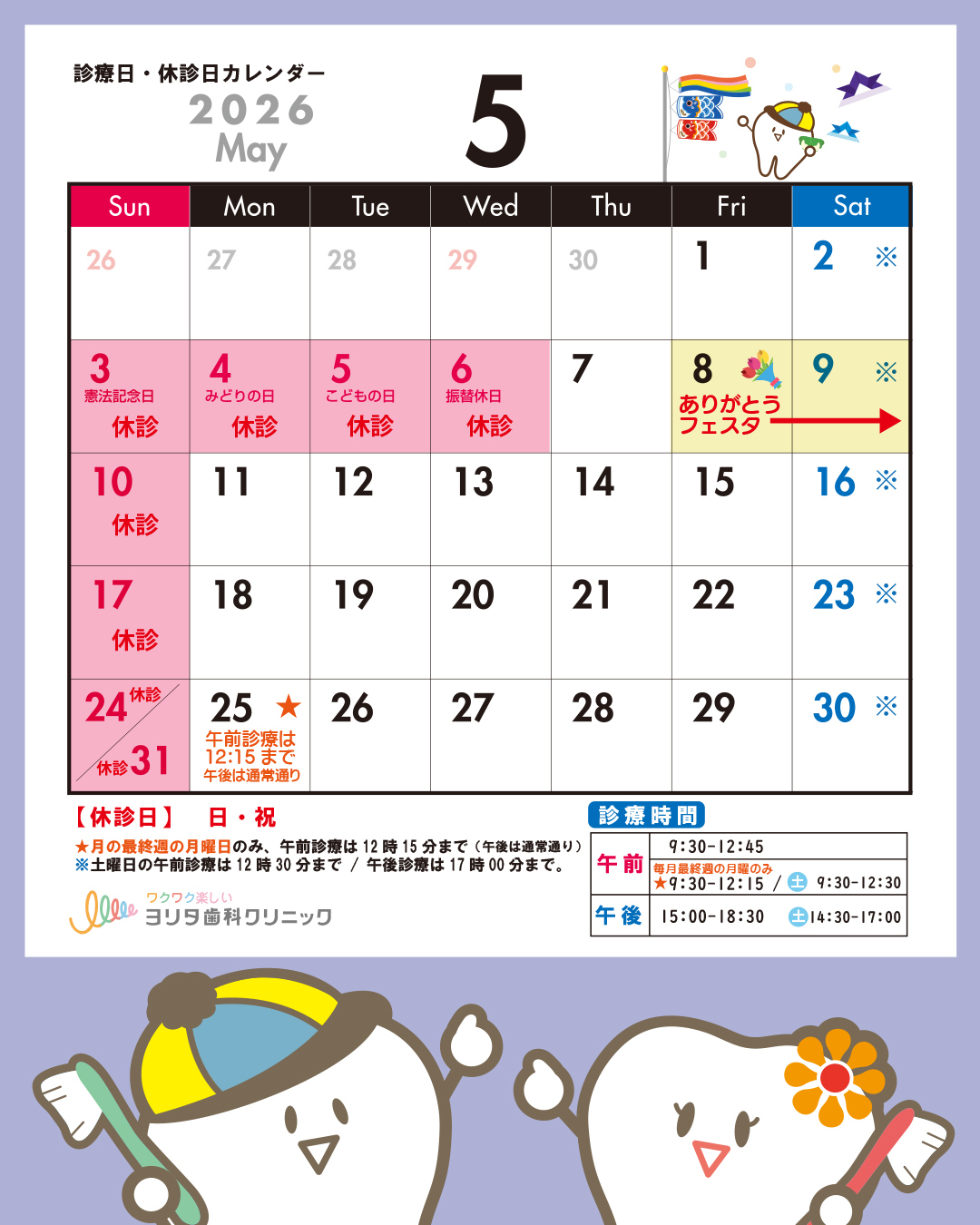 🎏5月の休診日は、