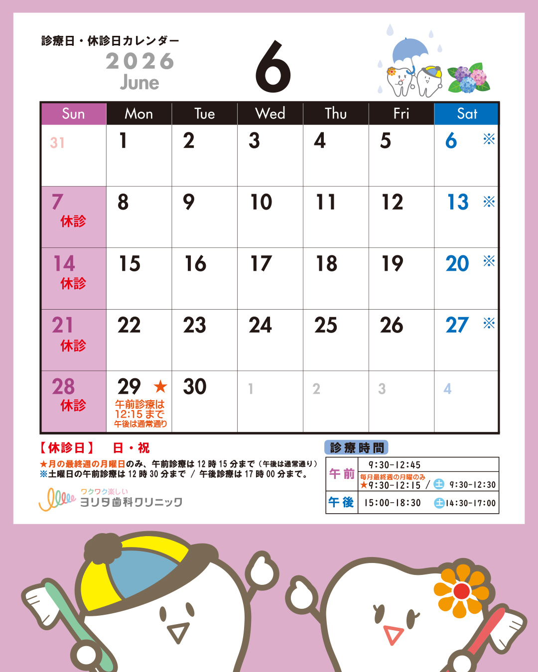 ☔6月の休診日は、
