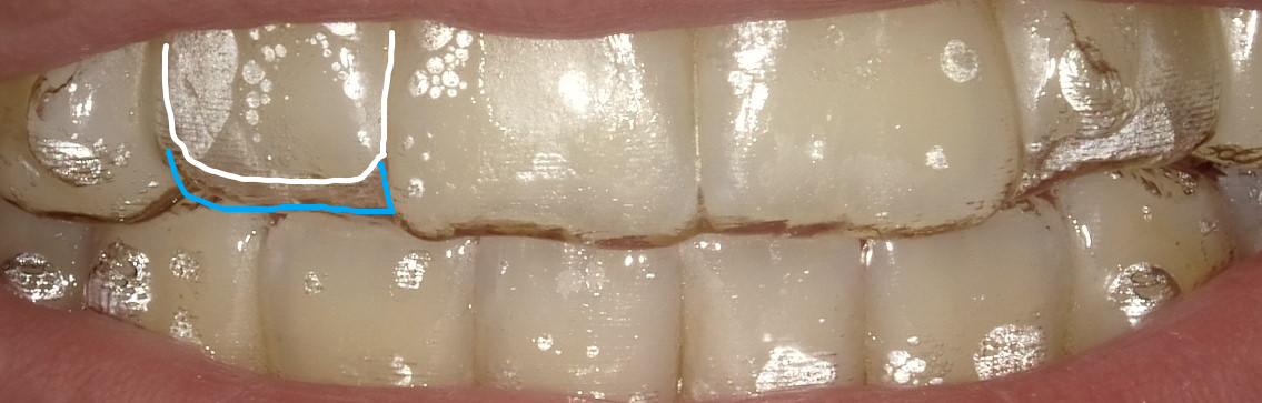白い線のところが歯の部分で、水色の先がマウスピースのはまっている部分です。