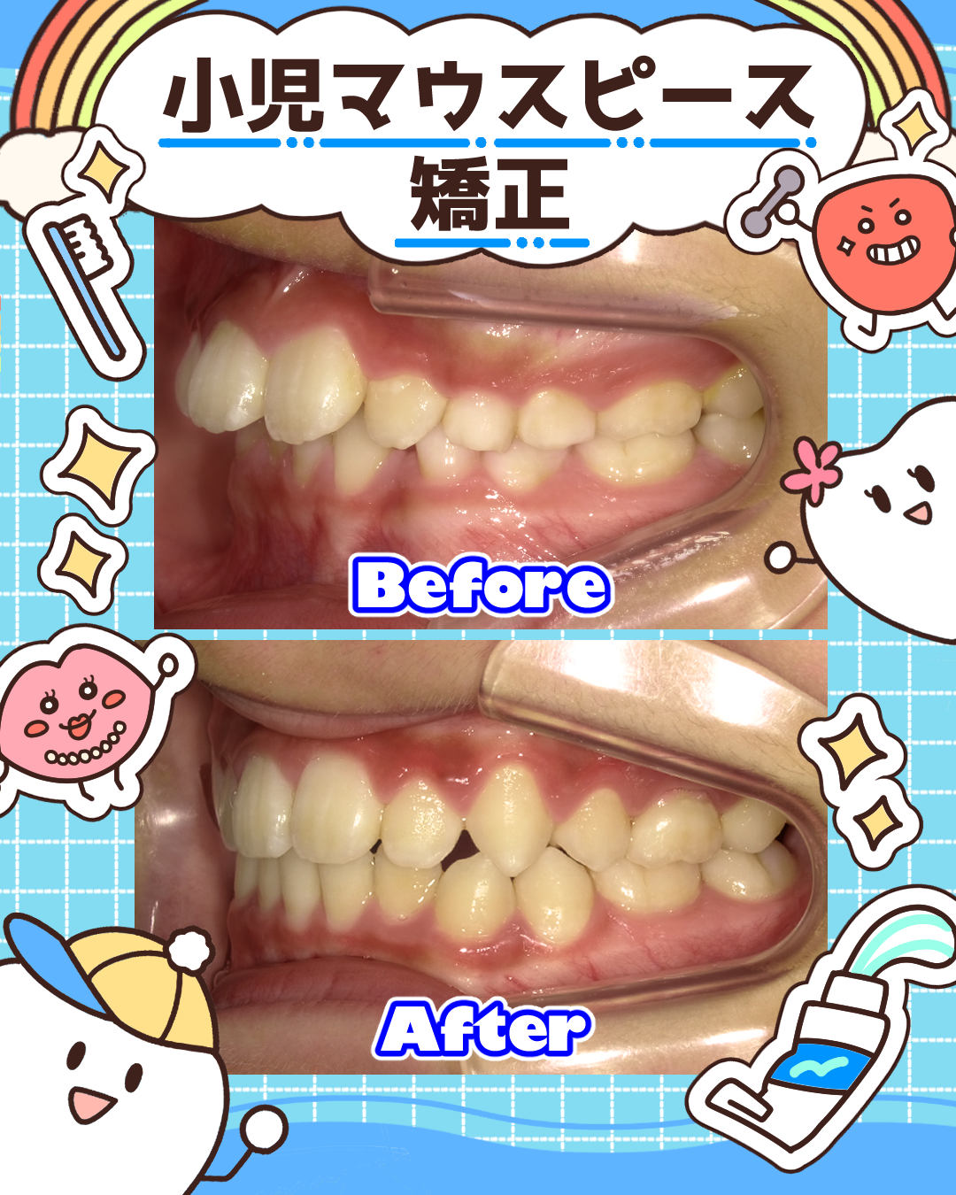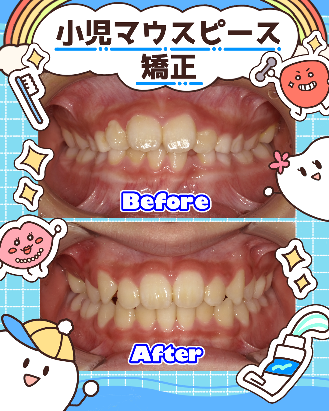 その小児マウスピース矯正の中でも今回は、前歯に大きく傾きがあるような歯並びの