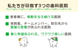 | ● 今日はこのセミナーに参加させて頂いて心に残った言葉が2つあります。 「輝く人が輝く人を作る」 「当たり前だと思っていたことがありがたいと思えた時、幸せを手にする…」 本当にそうだと改めて考えさせられました。 ● ただ一言です。 ● 前にDVDを見させて頂いて生の先生のお声を聞きたくて今日は来ました。 ● 歯科医院で、ワクワク楽しいなんてできるはずがないと思い込んでいて、 ● 今までいろんなセミナーに参加して来ましたが、今日は本当に心温まるセミナーでした。 ● スタッフの方々が輝いて仕事に取り組まれていらっしゃる様子がとても印象的でした。 ● 先生と新谷さんのお話を聞いていて、ヨリタ歯科クリニックは、スタッフが1人1人、 ● カウンセリングの大切さを改めて感じました。 ● スタッフみんなが笑顔であれば、患者さんも笑顔になれる。 |