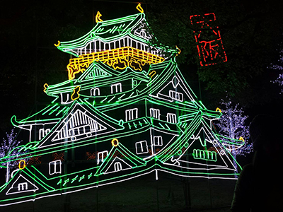 大阪城の一角に開催されてるイルミネーションは、かなり広い敷地を使われて