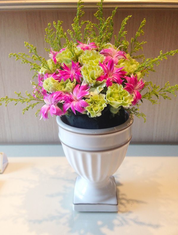 そして、実は受付にも、フラワーアレンジメントが飾られて