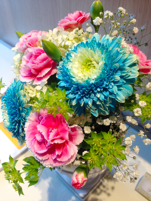 ピンクとブルーの華やかなお花が、大変美しいですね!