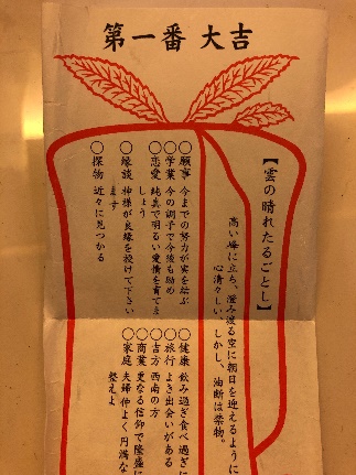 ですが、今年は一発で、自分の力で大吉を引いたので、何か誇らしいです。