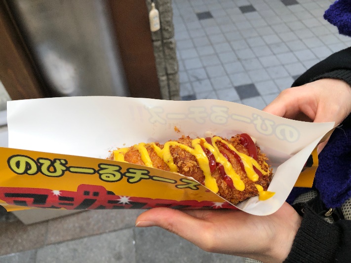 帰りに、のびーるチーズのアメリカンドックを食べました。