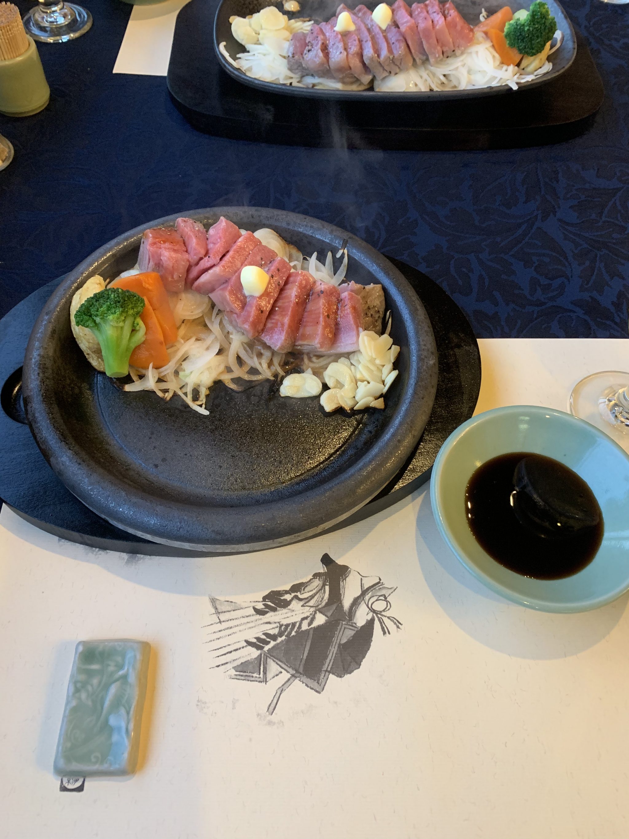 写真は持ってきてもらったときのものですが、鉄板の手前にバターを敷いて