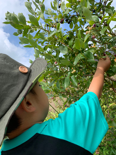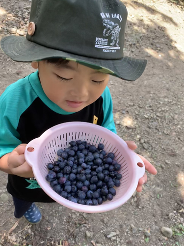 先日のお盆休み、実家に帰省した時に、おいっこと一緒にブルーベリーを収穫をしました。