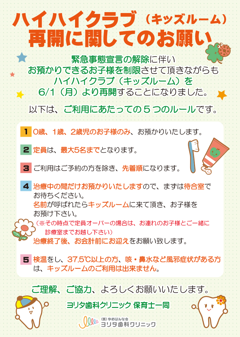 キッズルームの利用短縮など、ご協力を頂く事がありますが