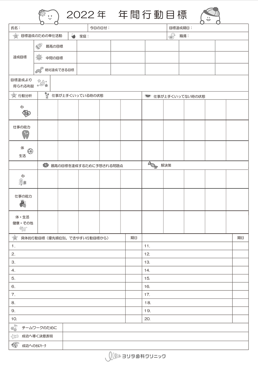 ヨリタ歯科では毎年、年末に、来年度の年間行動目標シートが配られます。