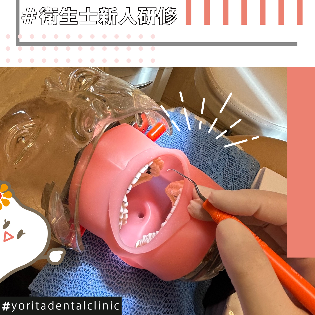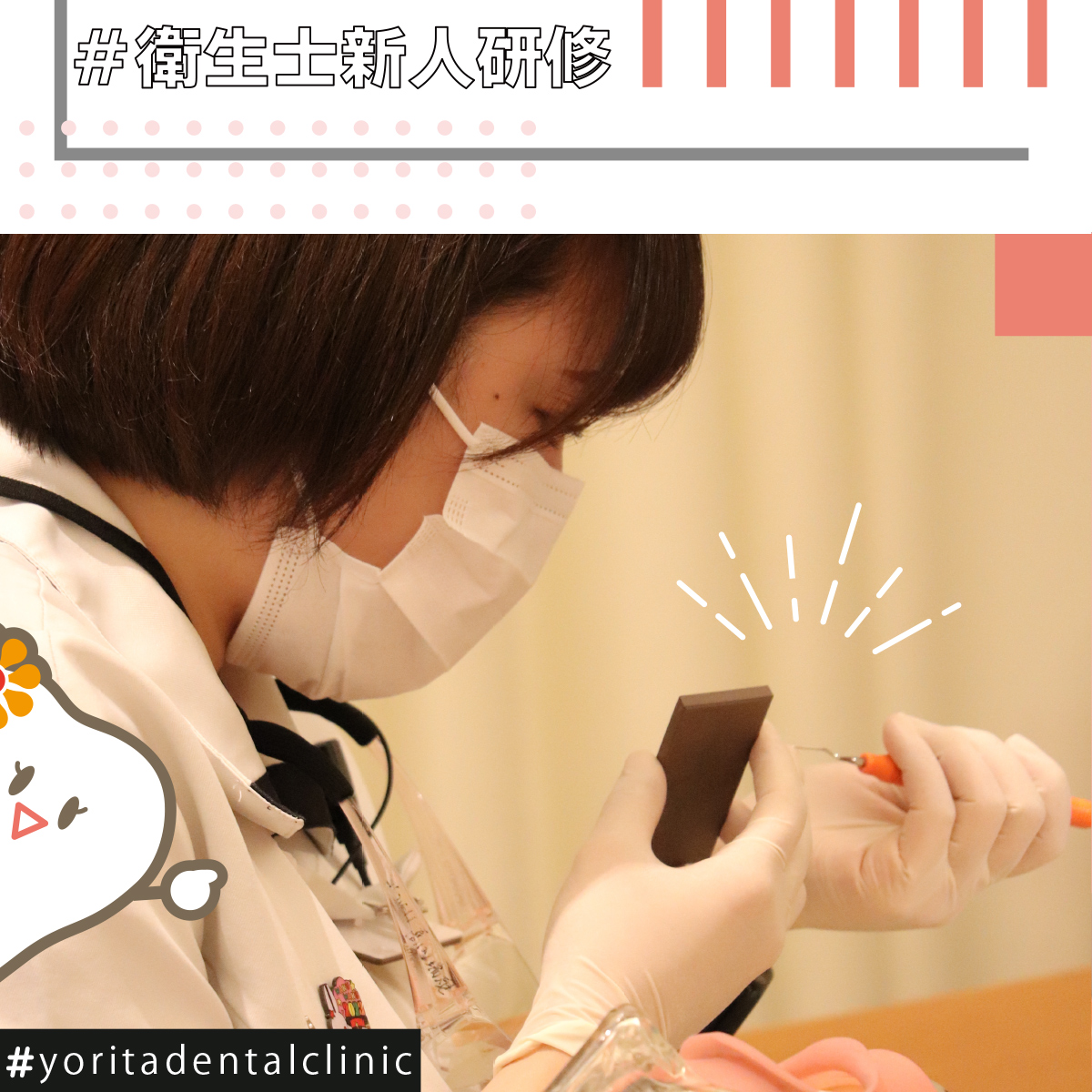 先輩衛生士さんにマンツーマンで教えていただいて、一つ一つ確実に覚えて行きます!🔥